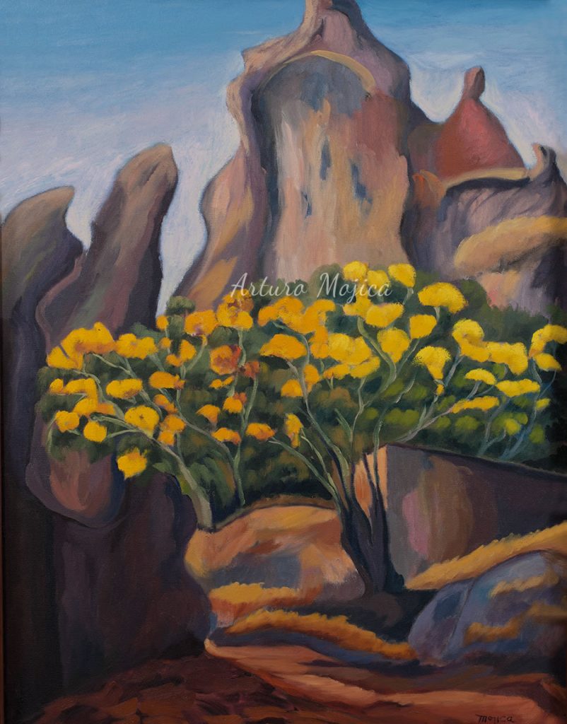 Las pinturas de Mojica Delgado son el poema impresionista que brota de su expresión sentimental, emocional, jubilosa ante la alegría de vivir que le provocan todas las expresiones naturalistas que le rodean.