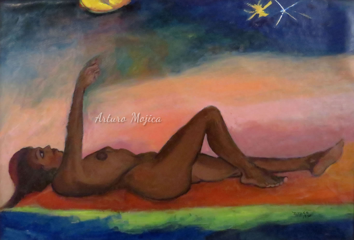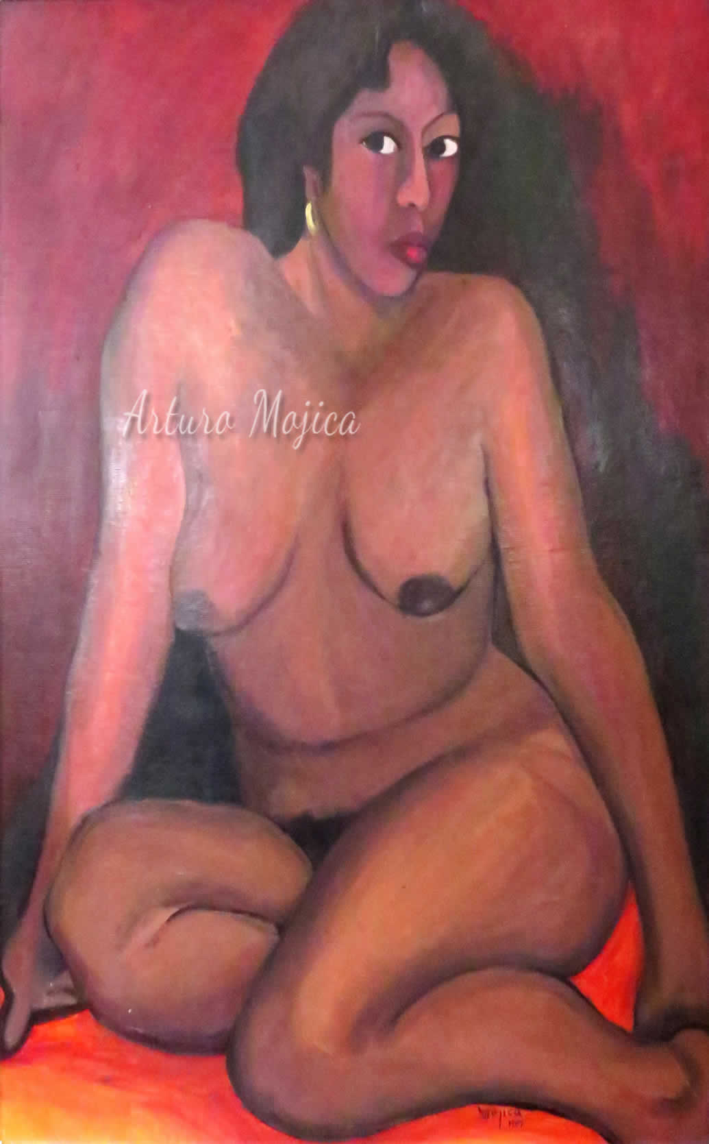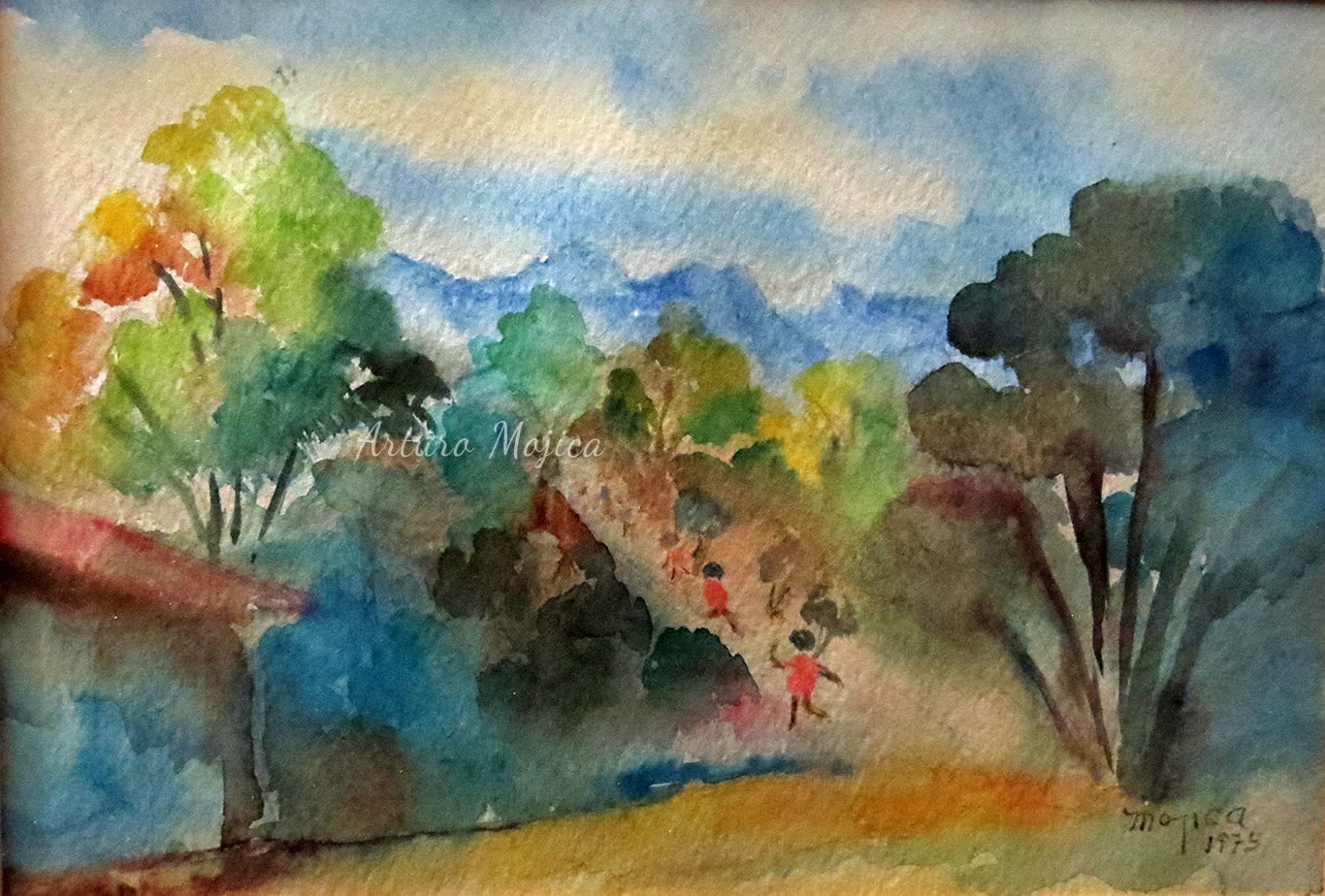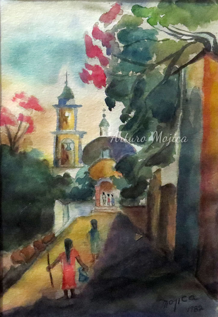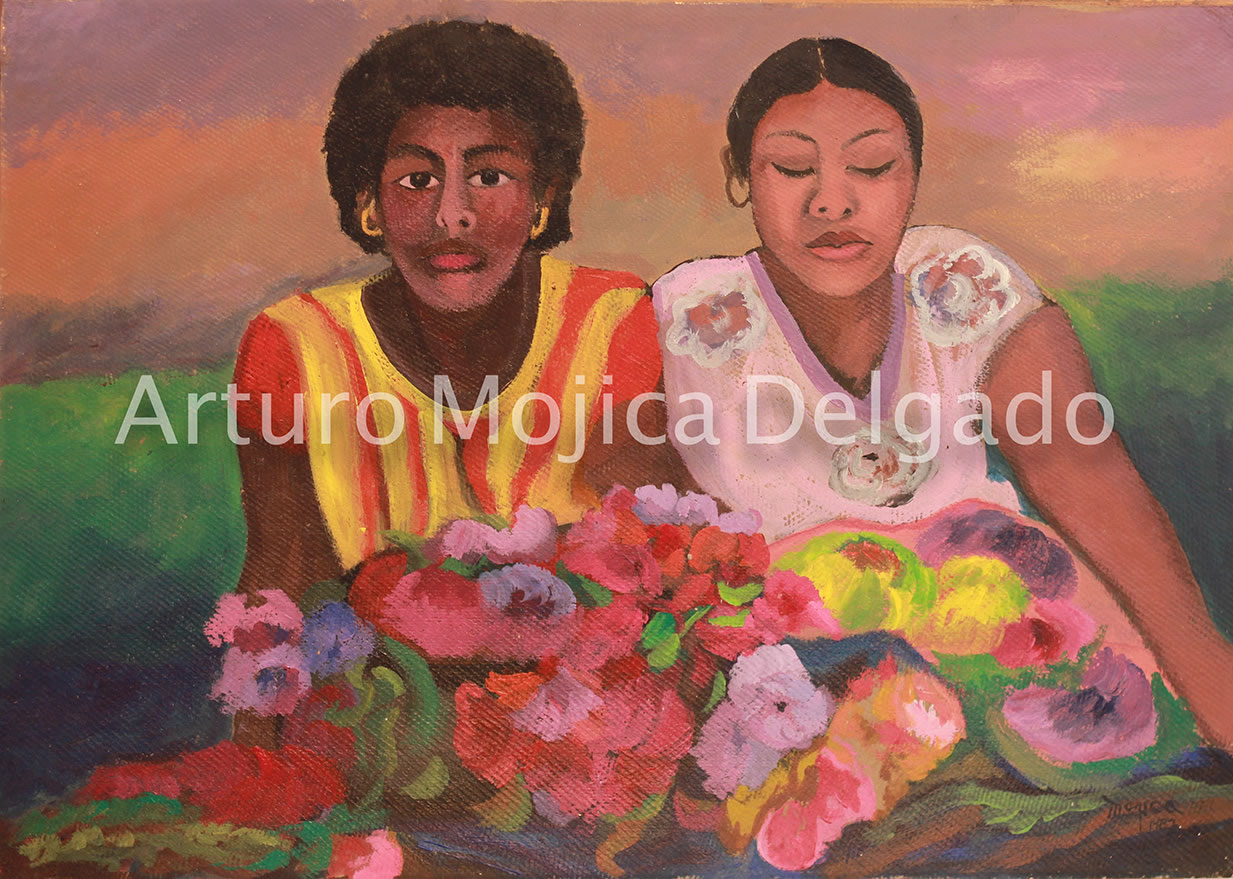 Los cuadros de Mojica son contundentemente tropicales, distintos a los que producen los pintores del altiplano, en los que lo trágico y solemne de las culturas prehispánicas está invariablemente presente, en la obra de Mojica campean con libertad y sin complejos de culpa los colores vivos y brillantes, sensuales y gustosos. Naturaleza hedonista que invita a entrar a ese mundo de colores vivos cuyos últimos secretos aún están por descubrirse. El desenfado por los colores, la brillantez y el fuego de los mismos en mucho lo acercan al fovismo.
