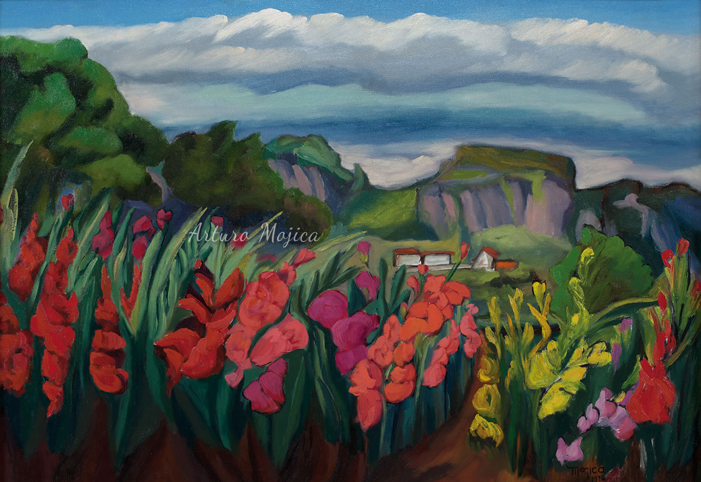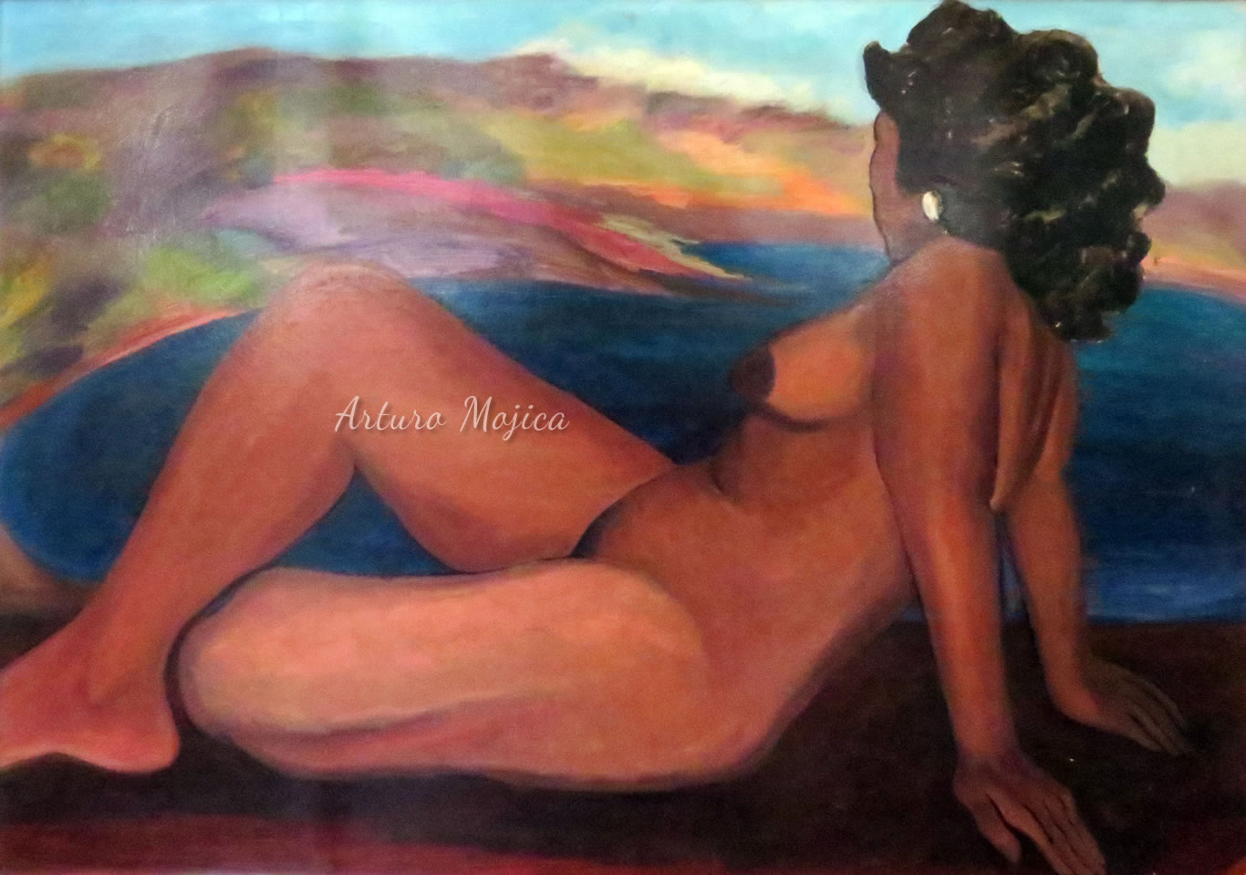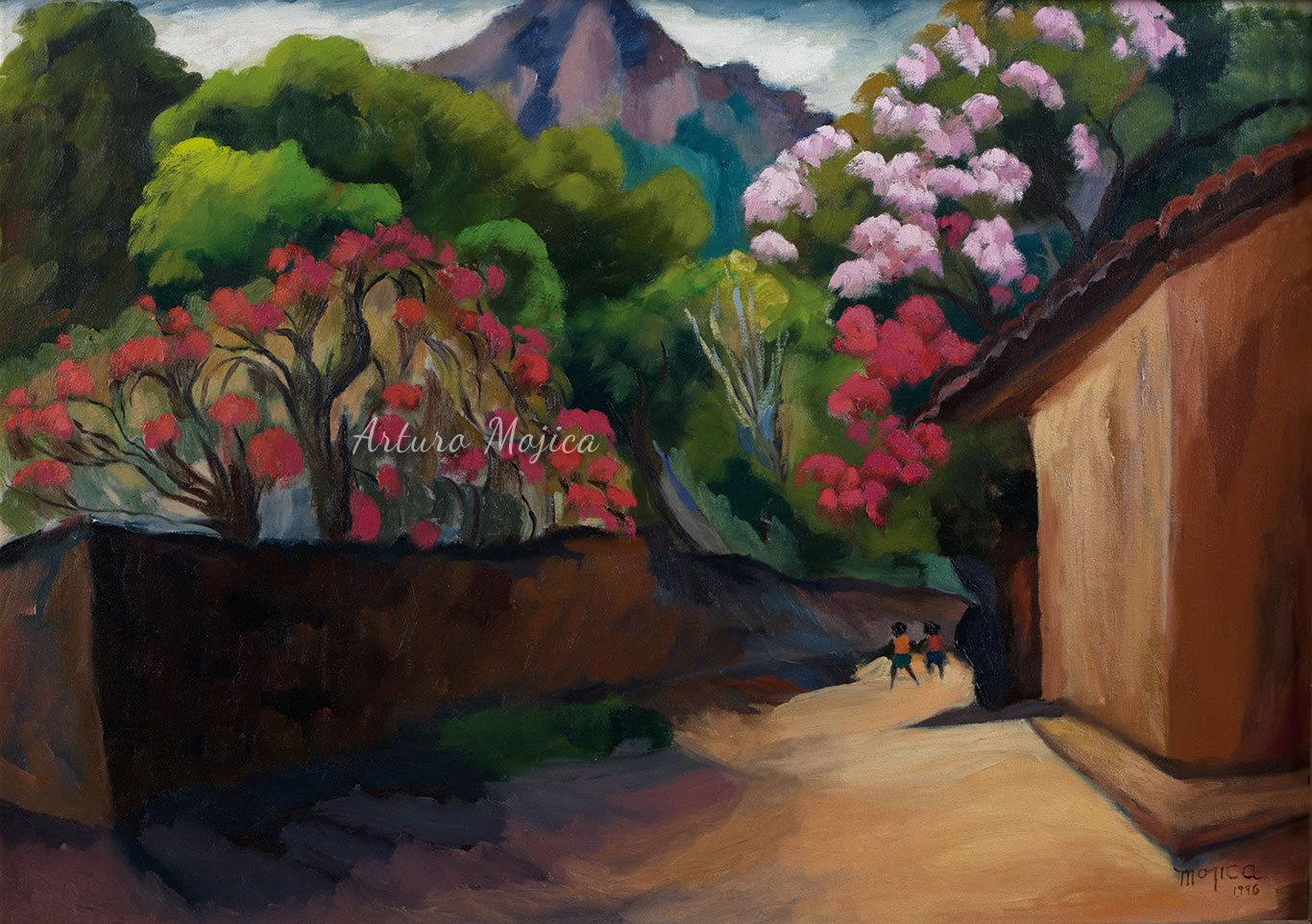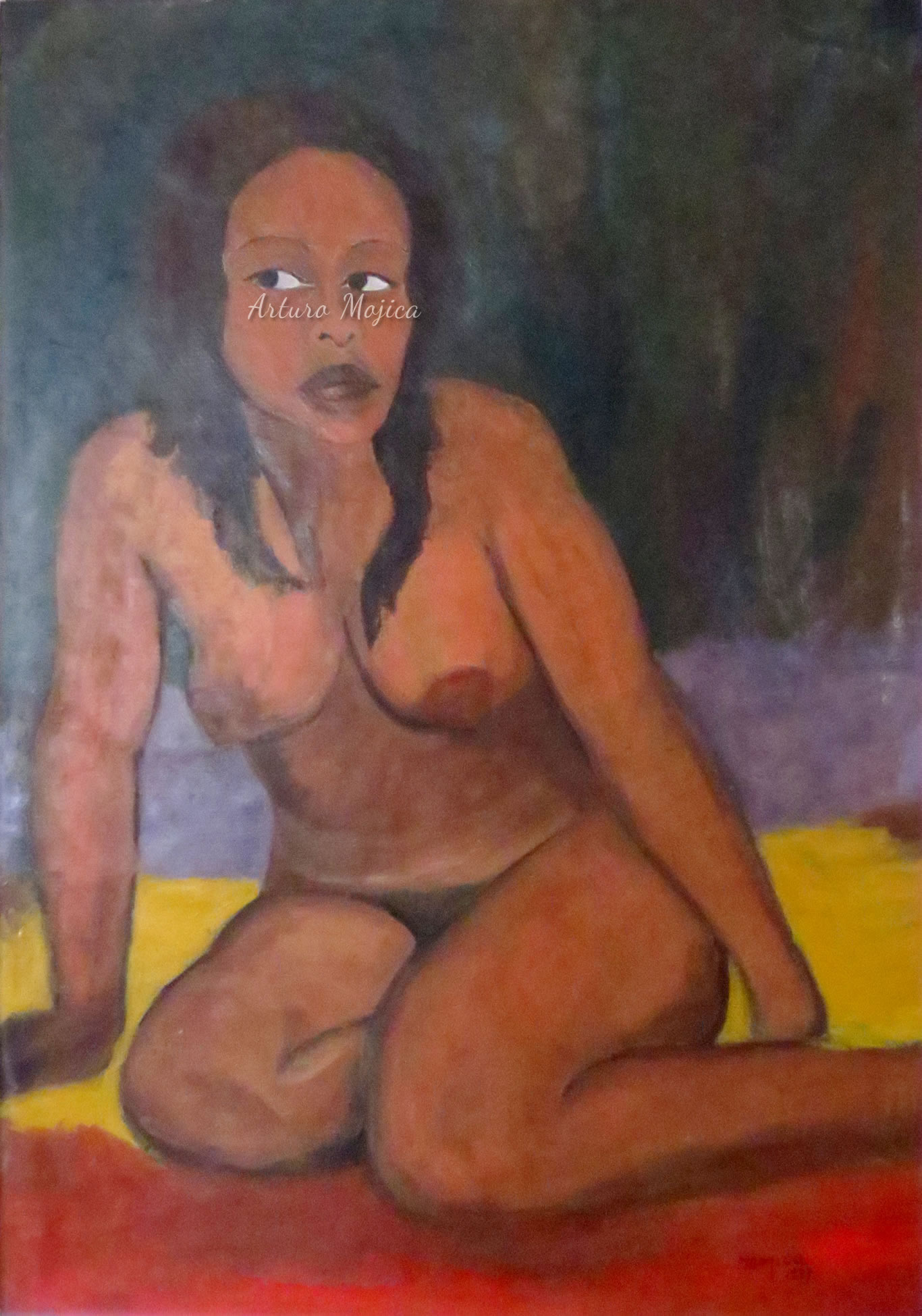 Los cuadros de Mojica son contundentemente tropicales, distintos a los que producen los pintores del altiplano, en los que lo trágico y solemne de las culturas prehispánicas está invariablemente presente, en la obra de Mojica campean con libertad y sin complejos de culpa los colores vivos y brillantes, sensuales y gustosos. Naturaleza hedonista que invita a entrar a ese mundo de colores vivos cuyos últimos secretos aún están por descubrirse. El desenfado por los colores, la brillantez y el fuego de los mismos en mucho lo acercan al fovismo.