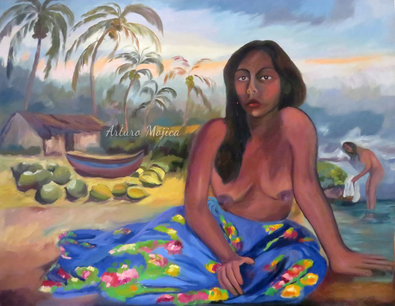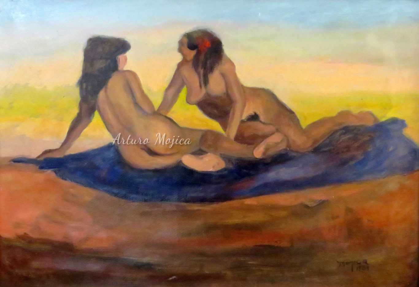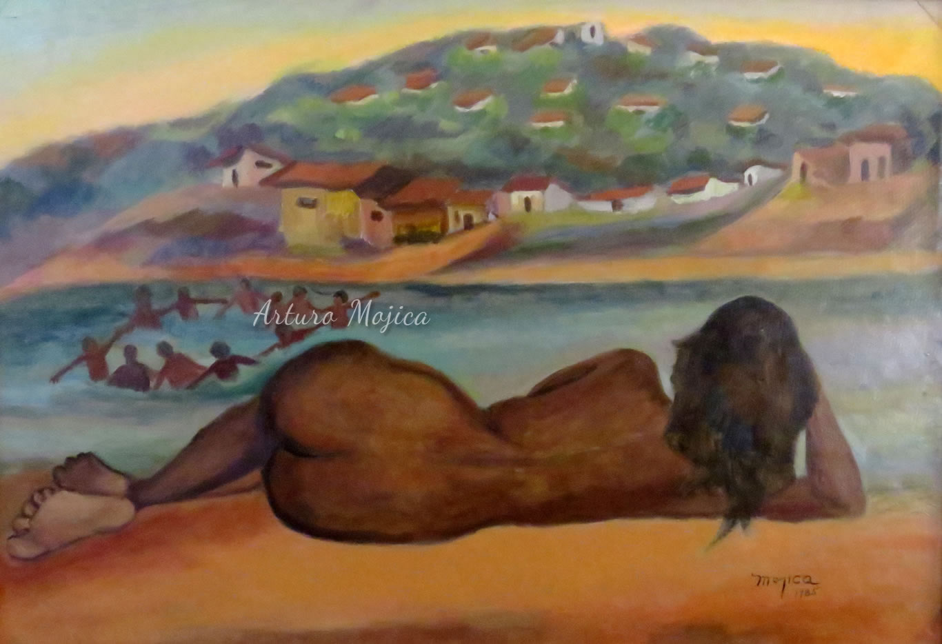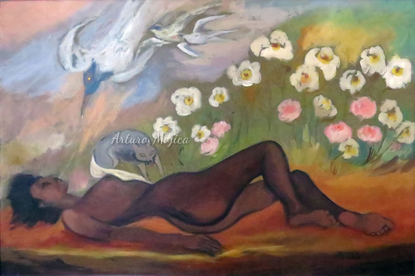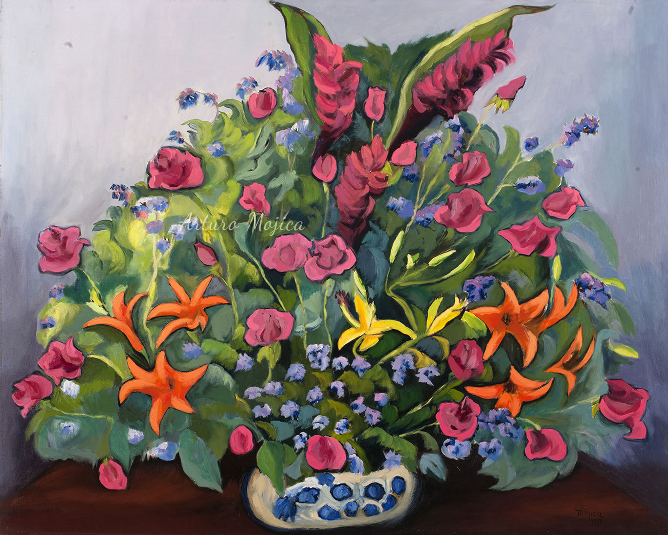 Los cuadros de Mojica son contundentemente tropicales, distintos a los que producen los pintores del altiplano, en los que lo trágico y solemne de las culturas prehispánicas está invariablemente presente, en la obra de Mojica campean con libertad y sin complejos de culpa los colores vivos y brillantes, sensuales y gustosos. Naturaleza hedonista que invita a entrar a ese mundo de colores vivos cuyos últimos secretos aún están por descubrirse. El desenfado por los colores, la brillantez y el fuego de los mismos en mucho lo acercan al fovismo.