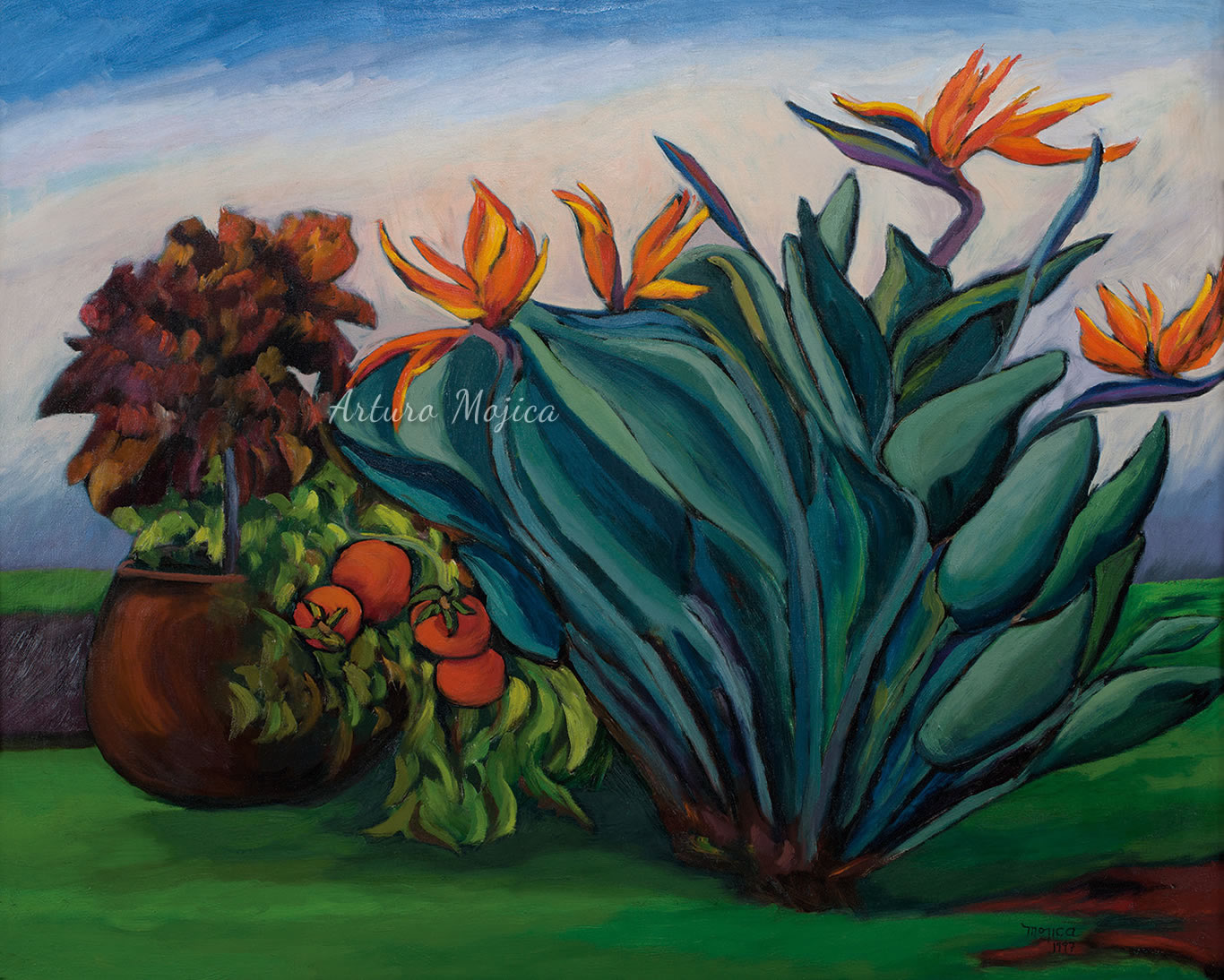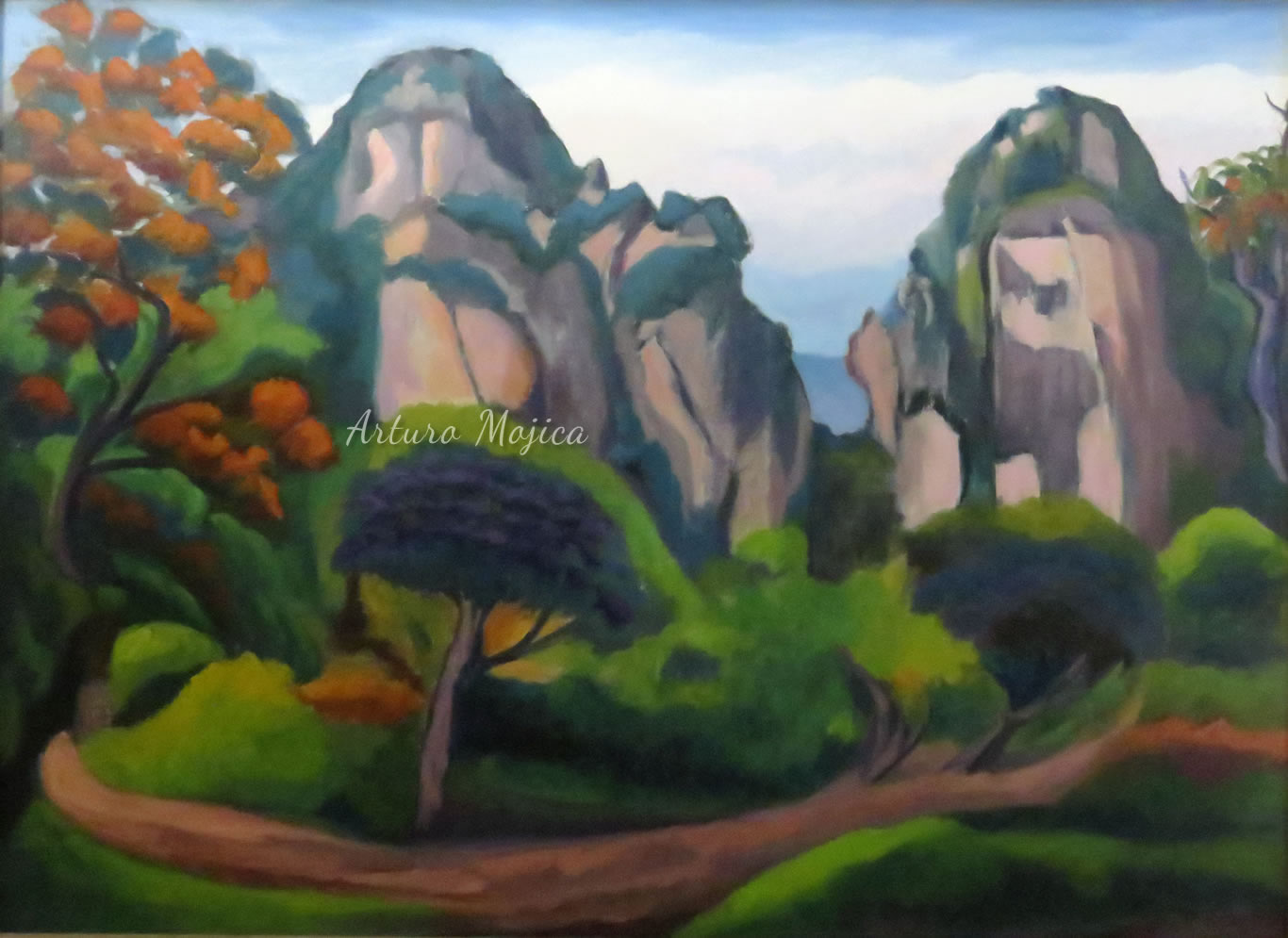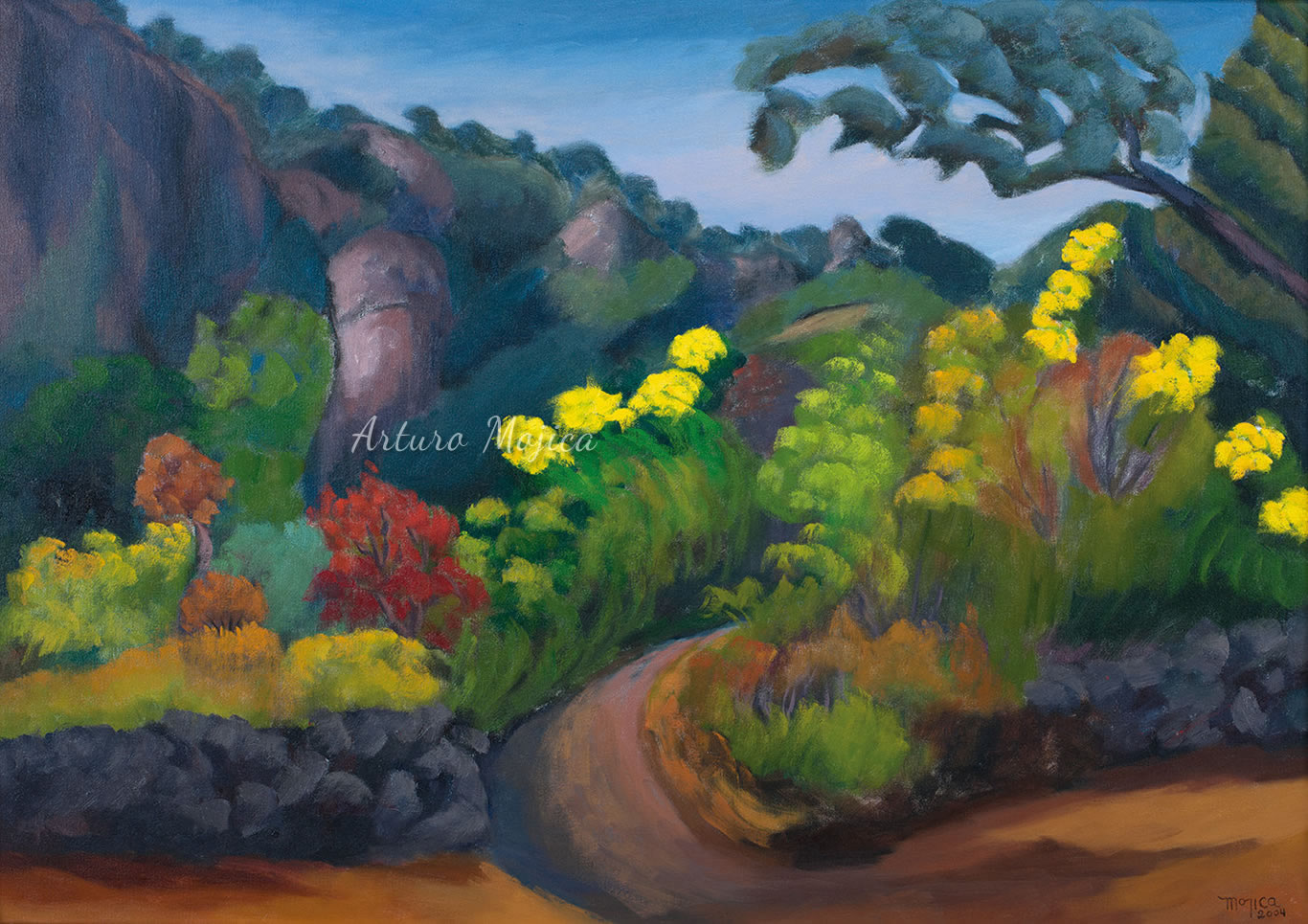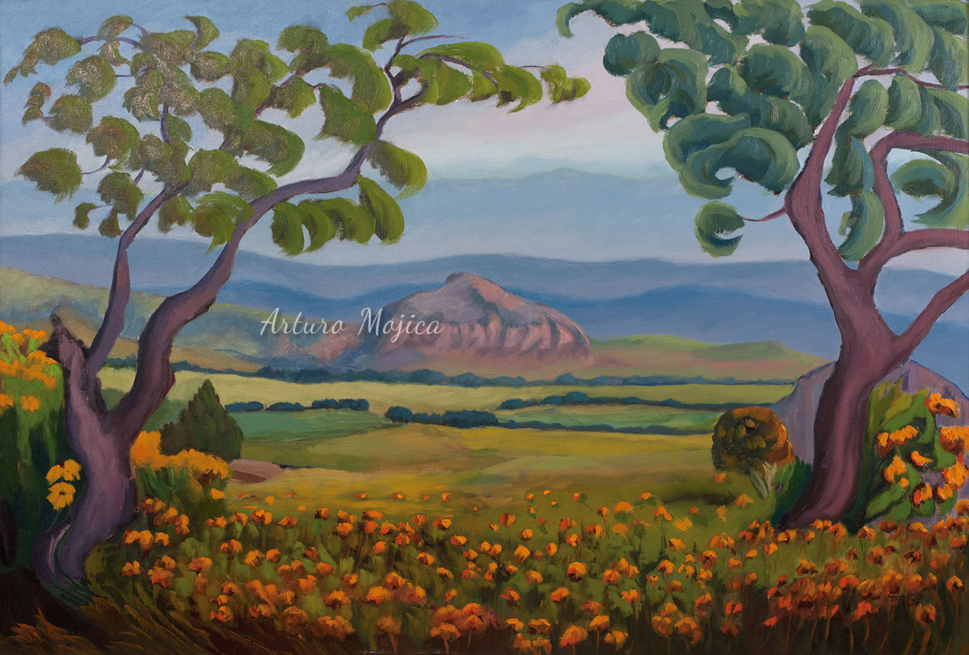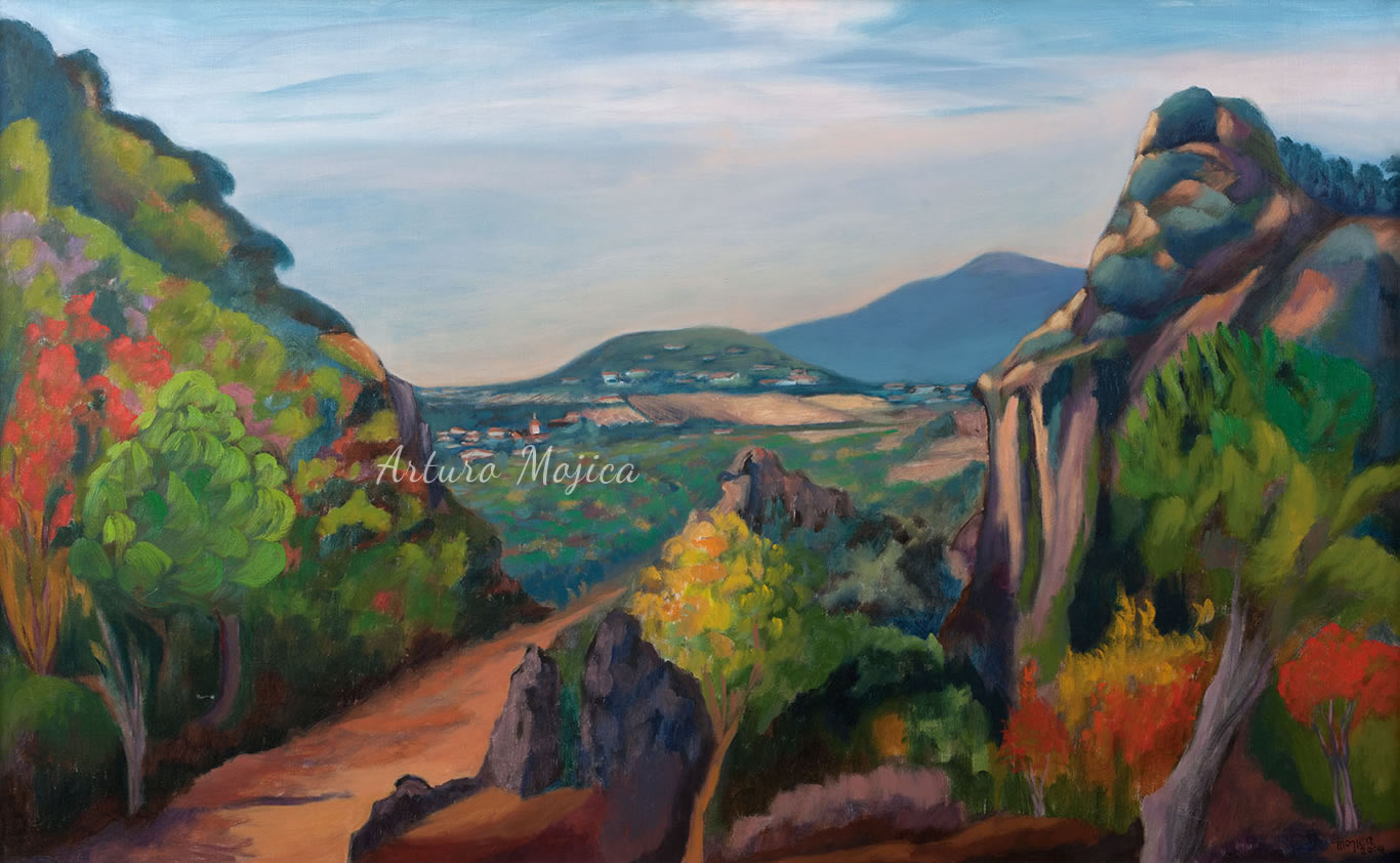 A lo largo de una prolongada y fructífera carrera, Arturo Mojica ha logrado un estilo único e inconfundible derivado de diferentes corrientes pictóricas. A diferencia de otros artistas, que pintan de manera realista, fieles a las formas y al color de lo que en la pupila de los ojos se refleja, logra a través de un perfecto equilibrio entre la realidad y la imaginación, porque lo que el artista ve es la realidad pero lo que su mano plasma, es la reinvención de esa realidad.